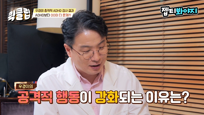 이지현에게 우경이의 증상에 대해 설명을 듣던 노 박사는 "엄마한테 공격적으로 하는 영상이 있나"라고 물었다. 이지현은 "저 매 맞고 사는 엄마다. 매일 맞는다, 얘한테. 이유도 모르고 맞는다"라고 호소했다.