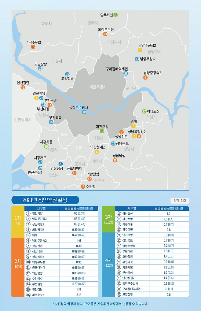 < '21년 공공분양 사전청약 대상지 및 공급물량 >