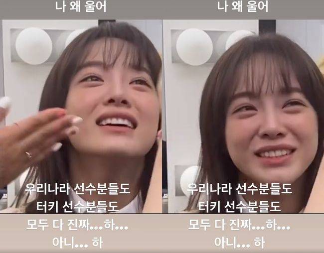 김세정은 4일 오전 자신의 인스타그램 스토리에 "나 왜 울어 우리나라 선수분들도 터키 선수분들도 모두 다 진짜...하..."라는 글과 함께 동영상을 게재했다.