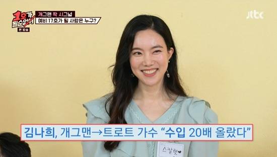 김나희는 "트로트가수가 된 후 수배가 20배가 늘었다"고 밝히며 "미래의 남편에게 혼수로 집을 선물할 생각이다. 남편은 장롱만 들고 오면 된다"고 전했다.
