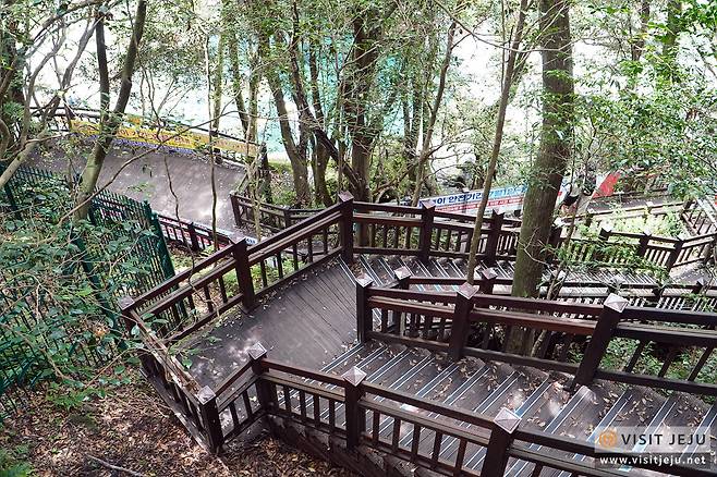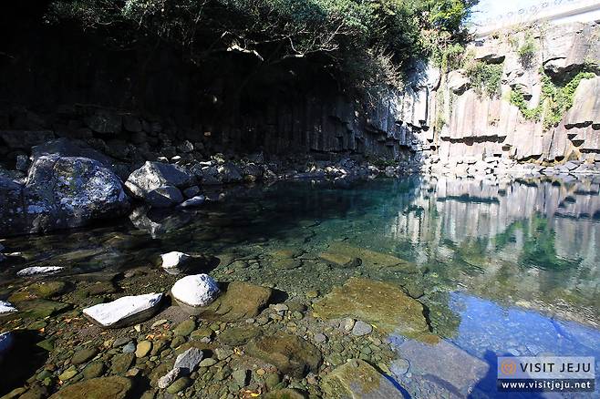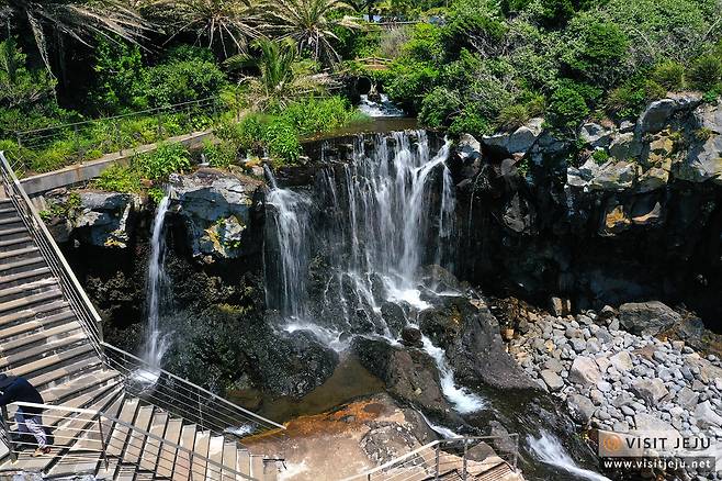 5M의 낮은 물줄기 10개 정도 보이시나요? 올레길 6코스를 지나면 만날 수 있는 소정방폭포인데요. 가까이에서 볼 수 있어서 정방폭포보다도 인기가 많을 때가 있답니다.