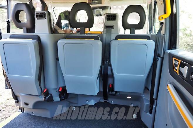 휠체어 탑승 시에는 공간 확보를 위해 앞쪽 시트를 안으로 밀어 넣을 수 있다. 여기에 전용 안전띠와 고리를 결속해 흔들리는 상황에서 편안한 이동을 보장한다. 넓은 공간을 갖춘 만큼 보호자는 옆에 위치한 별도 시트에 앉아 여유롭게 이동이 가능하다.