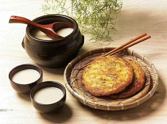 막걸리의 ‘막’에 대한 재밌는 어원도 있습니다. ‘막’을 ‘함부로’ ‘거칠게’로 봐 ‘함부로 막 거른 술’이라는 설이 있습니다. 또 다른 해석도 있는데요. ‘막’을 ‘금방’ ‘곧’으로 봐 ‘금방 막 거른 신선한 술’이라 막걸리가 됐다는 내용입니다. 그렇다면 동동주와는 어떤 차이가 있을까요? 동동주는 혼탁한 정도와 상관없이 발효 뒤 밥알이 동동 떠 있는 술을 뜻합니다. 마치 개미가 떠 있는 것처럼 보여 ‘부의주(浮蟻酒)’라고도 부릅니다.