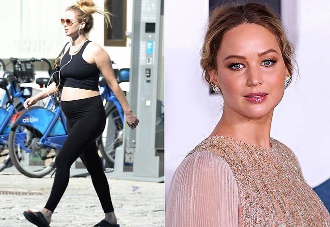 제니퍼 로렌스의 임신 룩은 여느 여배우들과는 좀 다릅니다. 그녀는 몇 달 전 불룩한 배가 그대로 드러나는 브라탑과 레깅스에, 편한 슬리퍼를 신고 뉴욕 거리를 활보한 바 있는데요.
