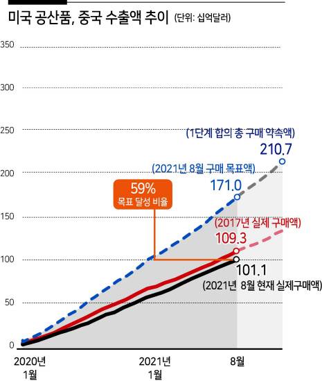 외견상 눈에 띄는 대목은 중국이 1단계 미중 무역합의에서 약속한 미국 상품 구입 목표액을 맞추는지 보겠다는 것이다. 피터슨국제경제연구소에 따르면 중국의 합의 이행률은 올해 8월 현재 61%에 불과하다. 공산품 구매 이행률은 항공기 분야 부진 등으로 59%, 농산품 이행률은 85%로 집계된다. 2020~2021년 미국 제품과 서비스를 2017년 대비 2000억달러 추가 구매하기로 했는데, 한참 모자라기 때문에 추가 이행을 촉구하겠다는 것이다. 여기까진 전임 도널드 트럼프 행정부 때 기조를 유지하는 걸로 볼 수 있다.