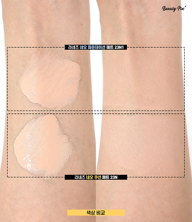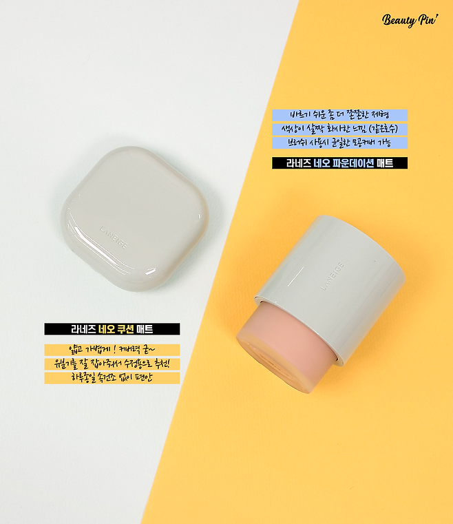 "라네즈 네오 쿠션"이 좀 더 빠르게 세팅되는 편이라서 그런지