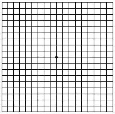 그 다음 확인해야 하는 것은 변시증(Metamorphopsia, 變視症)이다. 변시증이란 이상하게 보이는 현상을 의미하며 시력에 가장 중요한 황반(黃斑,Macula)에 문제가 생기면 발생한다. 분명 직선으로 보여야 하는 형상이 일부가 휘어지거나 안보이는 부분이 생긴다면 시력의 중심시야를 담당하는 황반에 손상이 발생한 것을 의심할 수 있다(그림. 암슬러 격자). 황반에 문제가 생기면 초점이 안 맞고 휘어져 보이거나 일그러지는 현상, 또는 정상인 눈에 비해 같은 글자가 더 크게 보이는 현상이 발생한다.