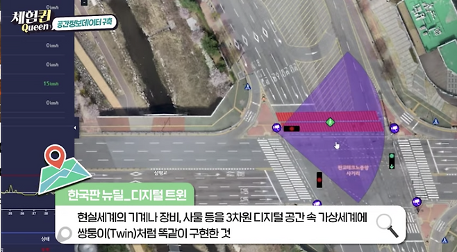 만약 건물이 철거되거나 도로가 새로 나게 되면 어떻게 될까요? 물론 어떤 부분이 변경되는지 찾아서 갱신을 하는데요. 실제로 도로에 나가 획득한 정보들을 가상공간에 실제 도시와 똑같이 구축해 놓으면 교통 흐름을 시뮬레이션해 볼 수도 있고, 디지털 지도에 실시간으로 반영하여 활용할 수 있다고 합니다.
