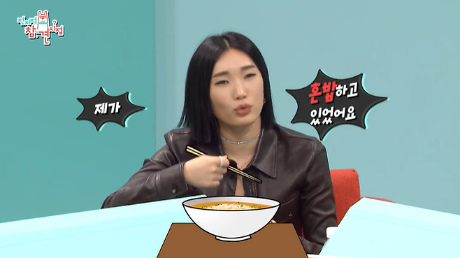 혼밥 중이라 민망했다는 립제이. 그런 상황에서 인사를 제대로 할 수가 없었다고!