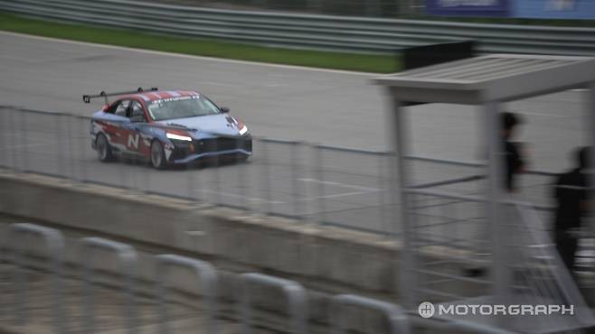 현대차가 15일 강원도 인제스피디움 N페스티벌 현장에 아반떼 N 기반의 레이스카를 깜짝 등판시켰다.