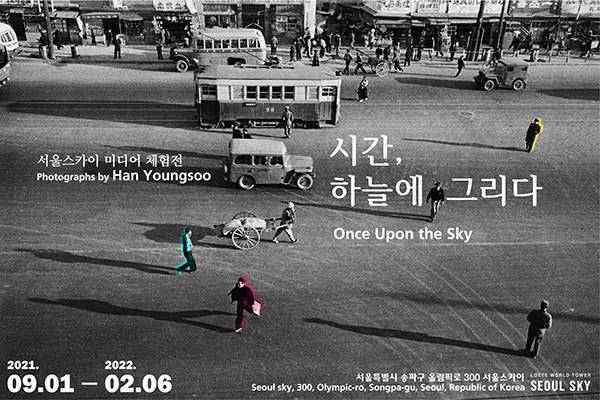 우리나라 건축물중 가장 높은 롯데월드타워 전망대 서울스카이에서 현재의 서울을 보며 한영수 사진작가의 과거의 서울을 만나는 미디어 체험전 ‘시간, 하늘에 그리다 - Once Upon the Sky’가 9월 1일 문을 연다. 1933년 개성에서 태어난 한영수는 어린 시절 그림에 재능을 보였고, 사진을 취미로 시작했다. 한국전쟁 참전 이후, 그는 사회 문제에 관심을 갖는 한국 최초의 리얼리즘 사진 연구단체인 ‘신선회’에서 사진가로서 활동을 시작했다. 1960년대 한국 경제의 급격한 성장과 함께 그는 한국의 광고 및 패션 사진에 선구자적인 역할을 한 한영수사진연구소를 1966년에 설립했으며, 수많은 사진 단체와 문화 기관에서 주요한 역할을 담당했다. 1986년에는 전국의 풍경사진을 담아 출간한 ‘우리 강산’과 함께 1987년에는 전쟁 후 한국의 모습을 담은 ‘삶’을 출간했다.