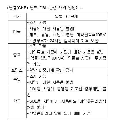 ●해외선 GBL 마약류 지정하고 사람에게 먹이면 처벌