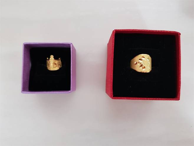 | ▲ 아기의 왕할머니께서 주신 반지들. 전라도의 왕할머니, 경상도의 왕할머니의 반지 선물 |