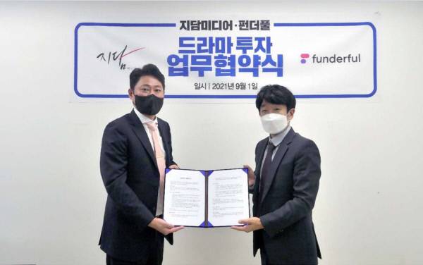 지담미디어와 펀더풀은 서울 여의도 지담미디어 본사에서 드라마 제작비 조달을 위한 업무협약(MOU)을 체결했다고 최근 밝혔다. 지담미디어는 최근 화제를 모은 드라마 ‘결혼작사 이혼작곡’으로 업계의 뜨거운 주목을 받고 있는 드라마 제작사이며, 현재 여러 편의 새 드라마를 기획·제작 중이다.