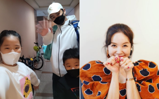 공개된 사진에는 등교를 위해 현관문을 나서는 장영란의 딸, 아들과 두 아이들을 데려다 주기 위해 함께 외출하는 남편 한창의 모습이 담겼다.