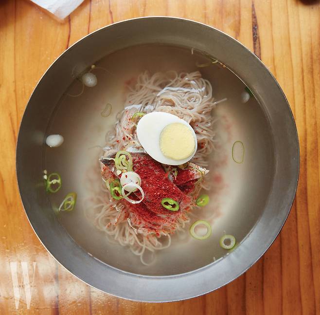 냉면 만드는 법은 최초로 소개된 『시의전서』라는 책에도 냉면은 “청신한 나박김치나 좋은 동치미국에 말되, 화청(和淸:음식에 꿀을 타는 것)하고, 위에 양지머리, 배, 좋은 통배추김치를 다져 얹고 고춧가루와 잣을 흩어 얹는다”고 설명하고 있죠.