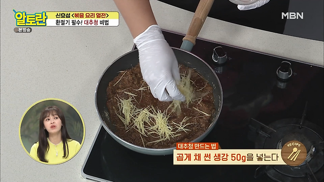 곱게 채를 썬 생강 50g을 대추청에 넣고 함께 끓여주세요
