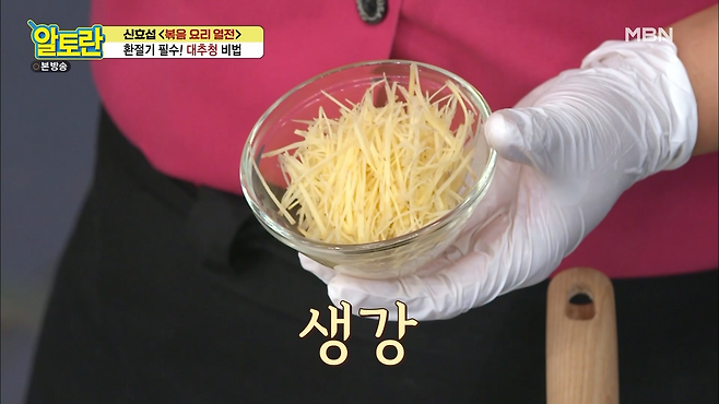 이 때 생강은 갈지 않고 채를 썰어 넣어야