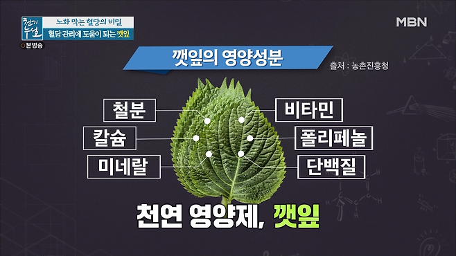 깻잎에는 철분, 칼슘, 미네랄, 비타민, 폴리페놀, 단백질 등의