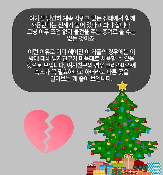 '크리스마스 이브' 숙박 예약 후 이별했는데..방 써도 되냐는 전 여친
