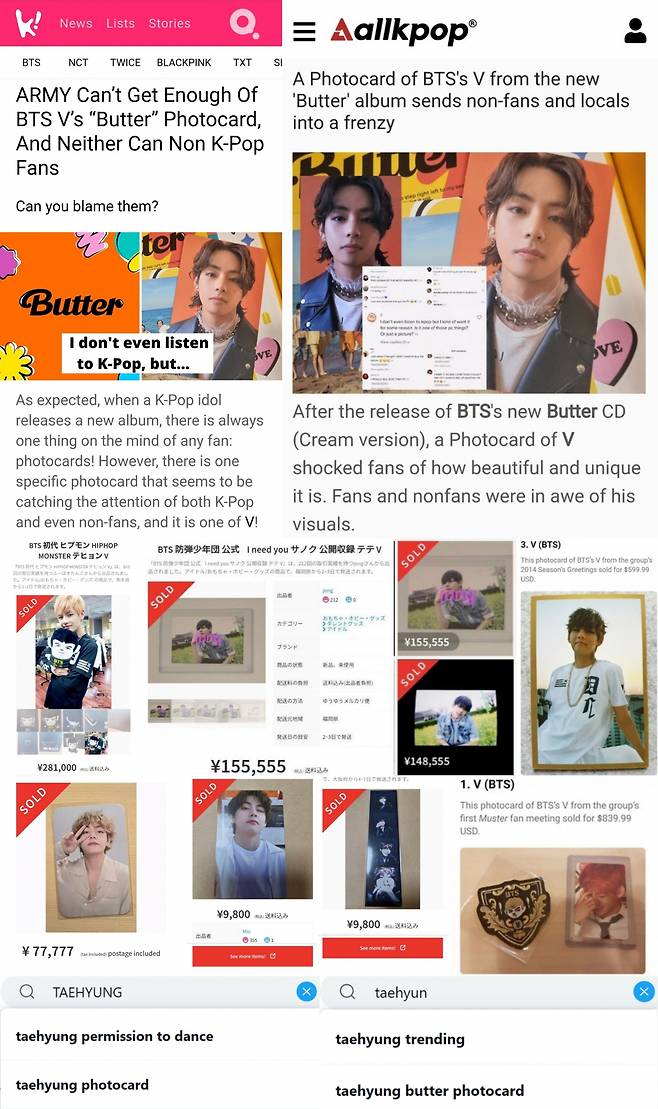 또 다른 매체 코리아부는 “K팝팬은 물론 팬이 아니더라도 시선을 사로잡는 포토카드가 있는데 그것은 바로 뷔, 항상 뷔의 포토카드와 굿즈는 가장 비싸고 수요가 많다”고 전했다.