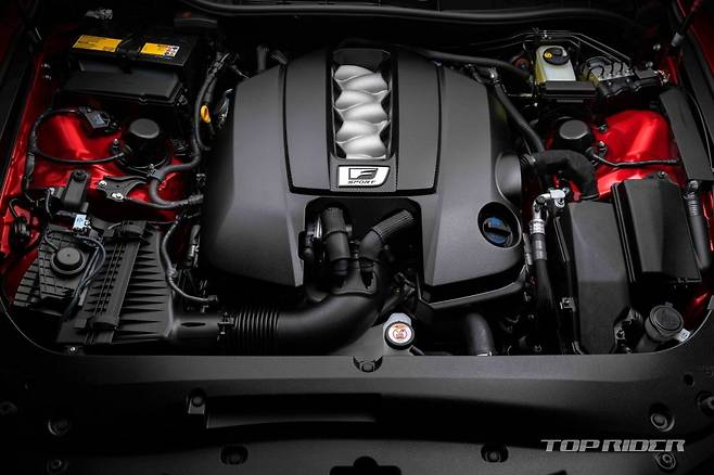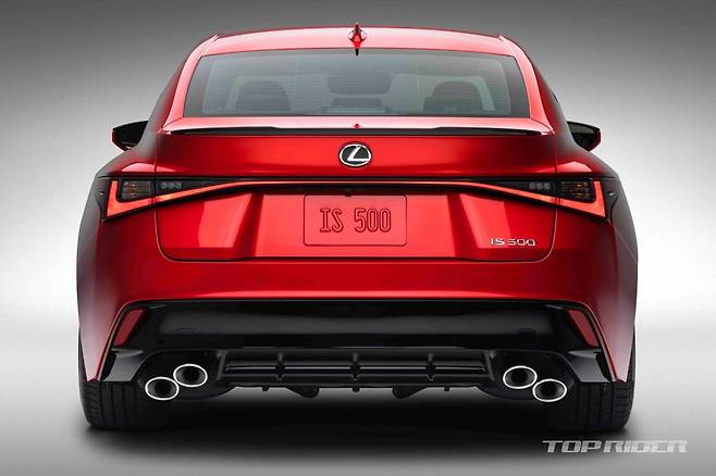 신형 IS500 F 스포츠에는 5.0리터 V8 엔진이 얹어졌다. 비슷한 가격대 중 유일한 V8 엔진이다. 8단 자동변속기가 조합됐다. 최고출력은 472마력, 최대토크는 54.6kgm다. 후륜구동 사양으로 정지상태에서 100km/h까지 4.5초가 소요된다. 공차중량은 IS350보다 65kg 가볍다.