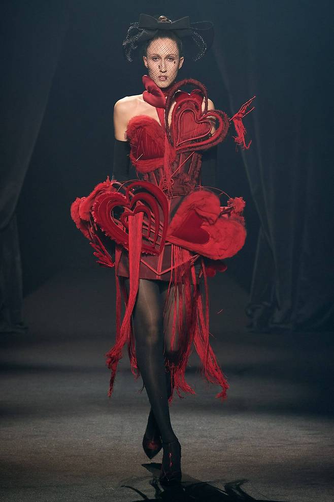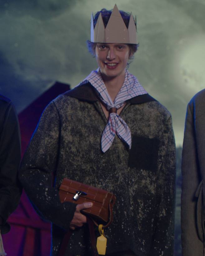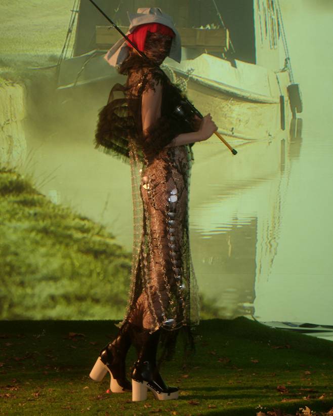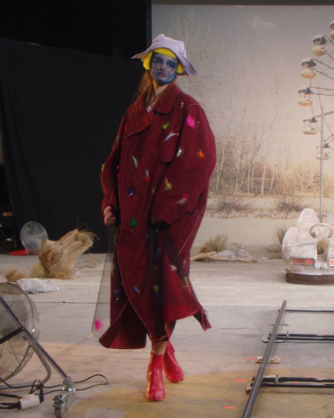 이번 시즌에 그는 21AW 아티산 컬렉션(AW21 Artisanal collection)을 위해 장편 영화를 함께 작업했던 라비앙 로즈(La Vie en Rose)의 감독 올리비에 다한(Olivier Dahan)과 다시 한번 힘을 합쳤다. 그들이 22SS 컬렉션을 위해 만든 단편영화는 확실히 우울하고 투박한 톤을 바탕으로 만들어졌지만, 첫 협업으로 탐험한 어둡고 해양인 주제보다는 더 튀고 가볍게 만들어졌다. 이러한 분위기는 옷에서 느껴졌다. 정신없는 젊은이들이 허벅지까지 올라오는 고무로 된 긴 장화와 거칠게 잘린 데님 쇼츠를 입고 스튜디오를 누비는 가운데, 갑옷 같은 로덴 울 코트는 아티산 컬렉션의 핵심이지만, 신선하고 펑키한 느낌을 위해 데님 재킷으로 장식됐다. 바토 넥 드레스는 밝고 얇게 비치는 메시로 뒤덮여있으며, 에소라쥬(essorage)로 겉옷에 얼룩덜룩한 표현을 하였다. 클래식한 마르지 엘라 패션에서, 비싼 것은 저렴하게 저렴한 것은 비싸게, 마른행주와 같이 ‘가난한’ 재료는 세련되게 재단장되고 섬세한 엠브로이더리는 단순한 면 리넨 코트의 안 감을 장식했다. 여기서 다시 한번 많은 이들이 규칙을 따를 수 있지만 존 갈리아노의 메종 마르지엘라는 항상 그러지 않을 것을 상기할 수 있다. MS