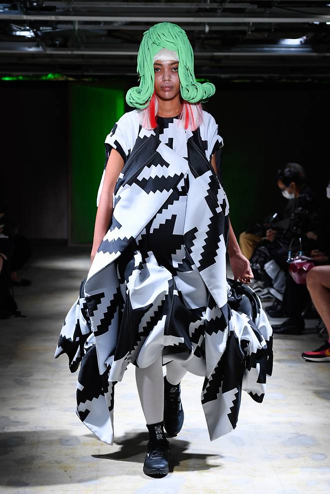 꼼 데 가르송(Comme des Garcons)의 SS22 컬렉션은 명확한 주제가 아닌 레이 가와쿠보(Rei Kawakubo)의 ‘현재 마음 상태’를 반영한 것과 같다고, 적힌 디자이너의 노트를 22SS컬렉션 온라인 프레젠테이션 이후에 나누어 주었다. ‘요즘 우리에게 필요 없다고 느낀 것들’의 간결한 리스트가 이어졌고 여기에는 ‘복잡한 천을 만드는 것’, ‘신체를 분명히 하는 패턴들’ 그리고 심지어 ‘옷을 만들려는 의도’도 포함되었다. 이는 패션 디자이너치고 꽤 장난스러워 보이지만, 가와쿠보가 40년 넘는 그의 커리어를 발전시켜온 정신의 증거이며 패션은 그에 멈추지 않을 정도로 나아가고 있다.