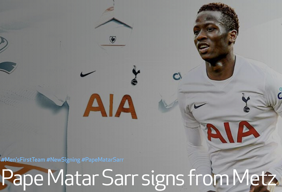 토트넘 홋스퍼는 28일(이하 한국시각) 구단 공식 홈페이지를 통해 18세 미드필더 파페 마타 사르의 영입을 공식 발표했다.