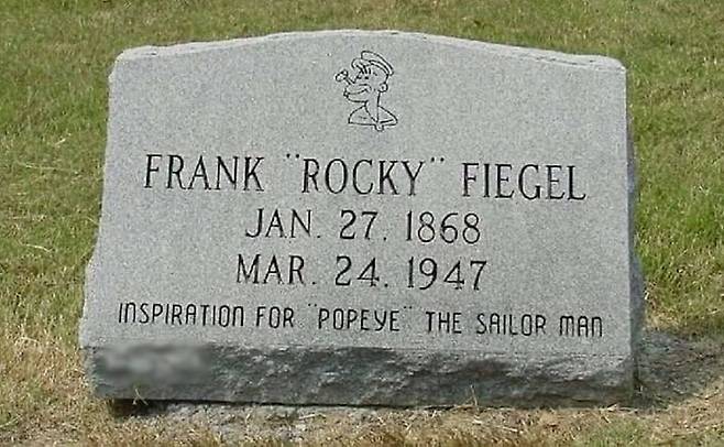 1947년 60세의 나이로 사망한 프랭크의 비석에는 뽀빠이 그림이 새겨져있다고 합니다.