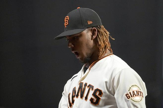 | ▲ 2021년 10월 14일 샌프란시스코 오라클 파크에서 열린 내셔널리그 디비전 시리즈 5차전 로스앤젤레스 다저스를 상대로 한 경기에서 샌프란시스코 자이언츠의 카밀로 도발이 교체됐다. |