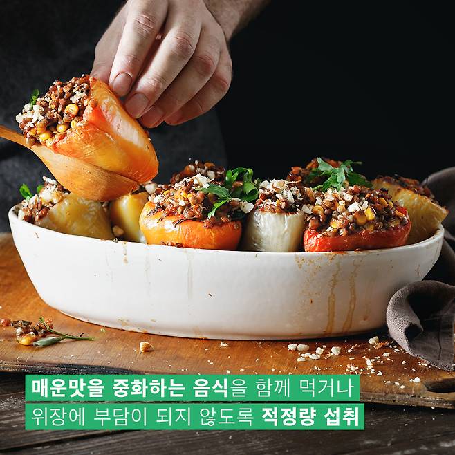 그럼에도 매운맛을 포기할 수 없다면, 건강하게 즐길 수 있는 방법을 알아볼까요? 매운맛을 건강하게 즐기기 위해선 적정량을 섭취하면서도, 매운맛을 중화하는 음식을 함께 섭취하며 위장 자극을 줄이는 것이 가장 좋아요.