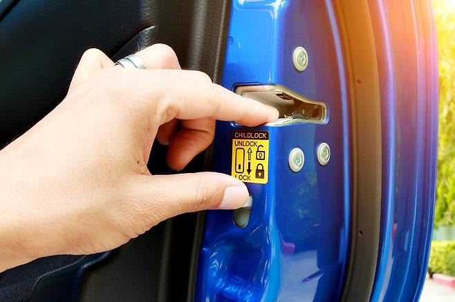 작동시키려면 손가락으로 잠금장치의 레버의 방향을 바꾸거나 비상용 자동차 키트에 보관된 일자 드라이버 또는 스페어키로 구멍에 넌 다음 표시된 화살표 방향(아이 형상 방향)으로 90도 돌리면 잠김으로 만들 수 있습니다. 추가적으로 운전석 왼편에 마련된 유리창 개폐 잠금 버튼을 같이 활용해 아이의 안전을 위해 뒷좌석에서 창문을 마음대로 조작하지 못하도록 하는 것도 좋습니다.