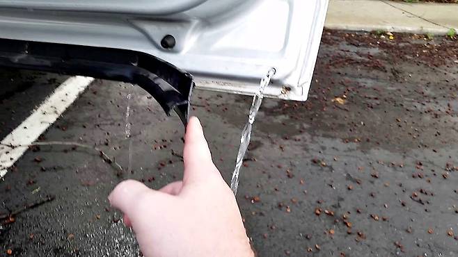 도어 내부엔 공간이 있고 그 안으로 유리를 숨기거나 다양한 장치를 위치시켜 둡니다. 만약 비가 오는 날 이 안으로 물이 들어가면 당연히 문제를 일으킬 수 있기 때문에 차 문 아래엔 물이 고이지 않도록 배출시키는 작은 구멍이 여럿 뚫려 있습니다. 오래된 차량의 문 하단부가 녹이 생긴다거나 구정물 자국이 나는 것도 다 차량의 도어 배수구 때문입니다.