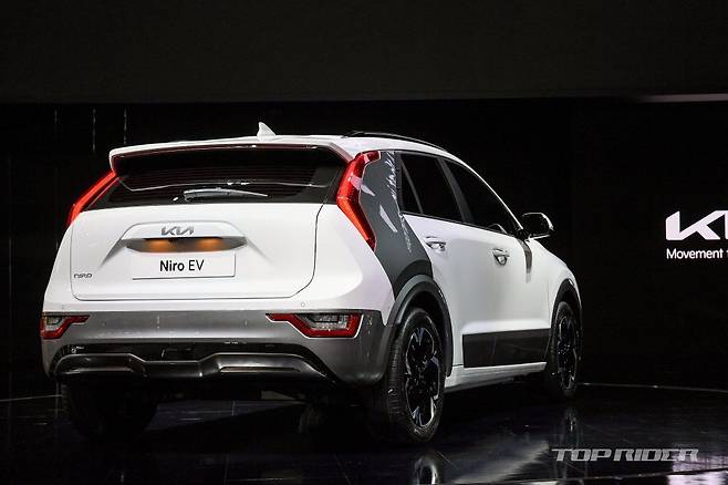 C필러는 공기의 흐름과 저항을 고려해 설계됐으며 투톤 컬러다. 심장 박동을 형상화한 후면부 리플렉터와 스키드 플레이트로 전면부와 통일감을 줬다. 신형 니로 전기차는 무광과 유광을 조합한 투톤 그릴에 육각형의 입체적 패턴을 삽입해 하이브리드 모델과 차별화했다.