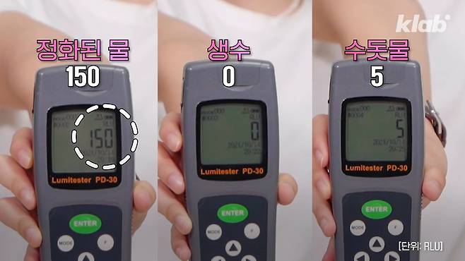 정화된 물의 측정값은 150RLU로