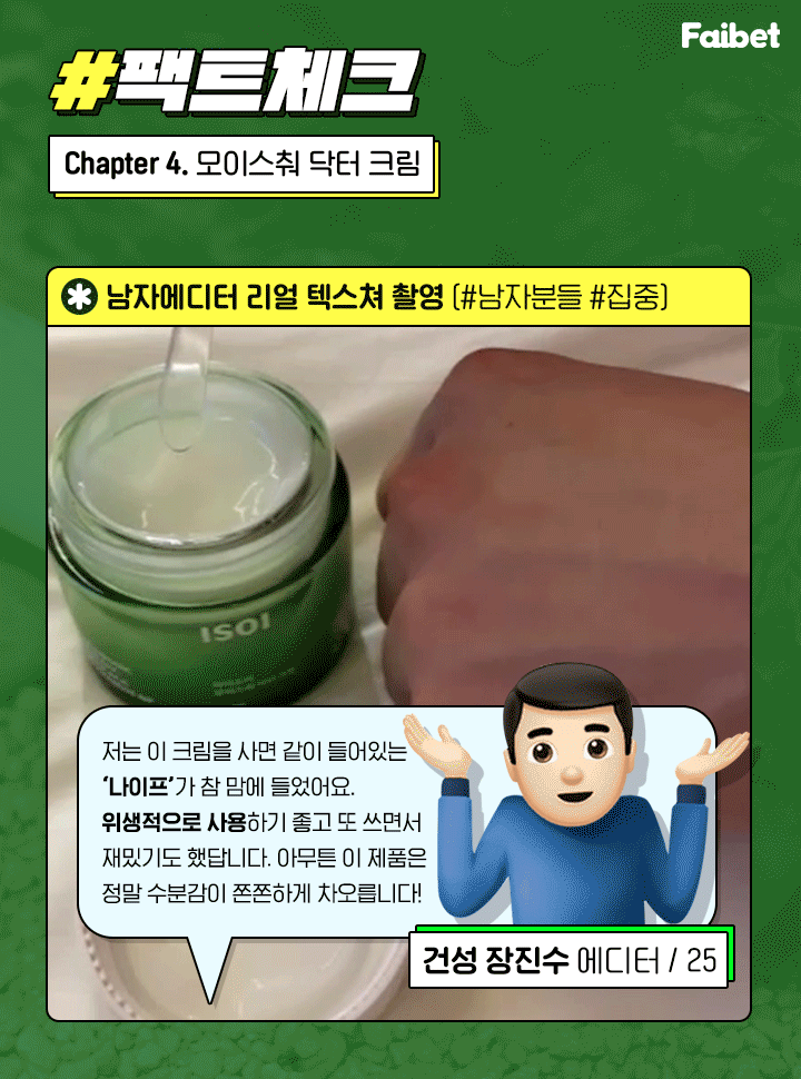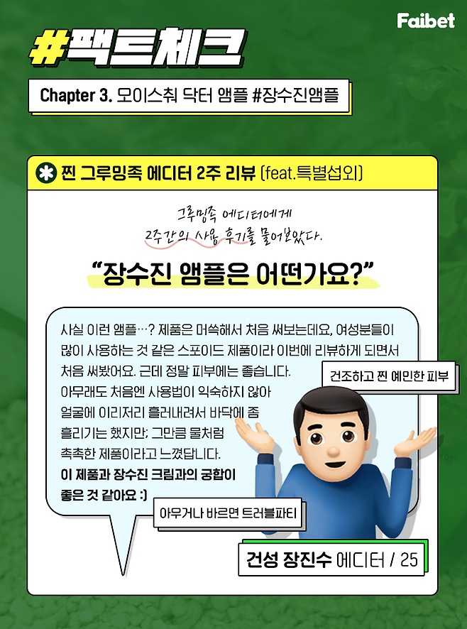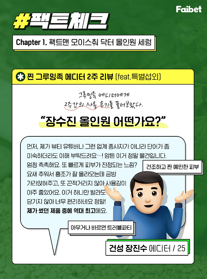 파이뷰티 에디터님이 저에게 건성 장진수라는 별명을 지어주셨어요!