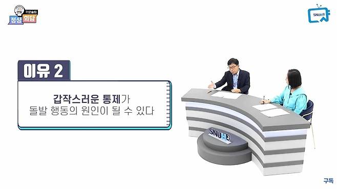 조절 능력이 없는 상태의 아이에게 갑작스럽게 통제를 가하면, 분노 조절이 안 되고 폭발적으로 증상이 나타날 수 있습니다.