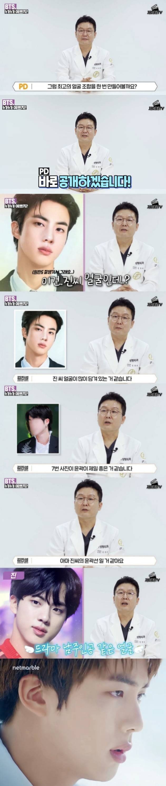 성형외과 전문의 김진성 원장은 제이티 성형외과의 공식 유튜브 계정에 게시된 영상에서 방탄소년단 멤버 7명의 얼굴을 분석했다.