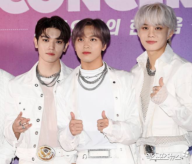 (엑스포츠뉴스 김한준 기자) 10일 오후 서울 삼성동 코엑스에서 열린 '온택트 2021 영동대로 K-POP콘서트’에 참석한 NCT127 태용 해찬 정우가 포즈를 취하고 있다.