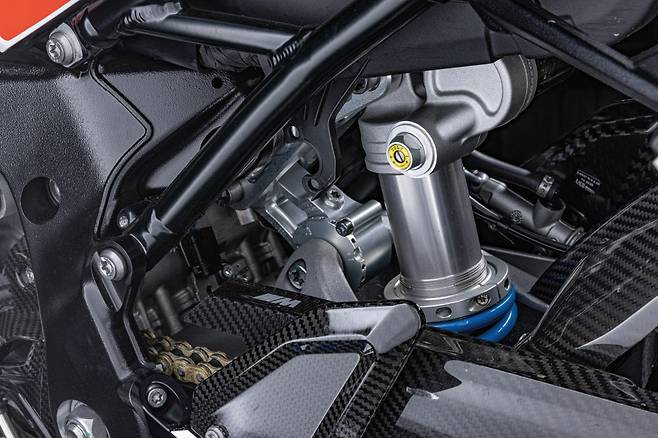 3세대 S 1000 RR부터 적용된 풀 플로팅 방식 (서스펜션이 차대와 스윙암 중간에 스트럿으로 연결되어 공중에 떠있는 구조를 의미한다)은 동일하지만 전자식이 아닌 조절식이며 서스펜션 자체의 움직임이 뛰어나다. 스윙암쪽 스트럿의 연결 위치를 변경해 뒤쪽의 높이를 조절할 수 있는 어저스터가 추가되어있다.