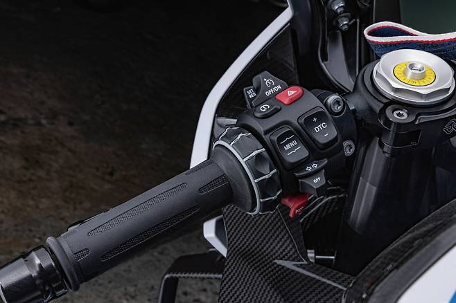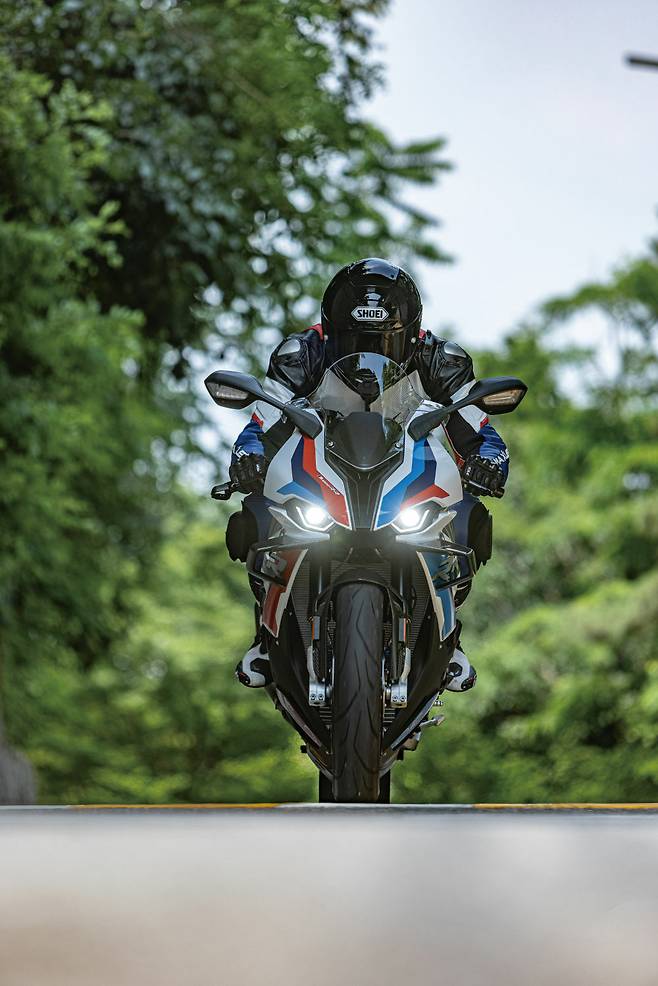 사실 바이크에 오르기 전까지 M의 브랜드 이미지를 빌려온 S 1000 RR의 드레스업 버전에 지나지 않을 것이라 반신반의했다. 성능을 기대하지 않았다는 이야기는 아니다. S 1000 RR이 워낙 뛰어난 모델이기에 M을 더한다고 극적인 변화가 있을까 싶었던 것이다. 자동차라면 3시리즈와 M3의 성능은 하늘과 땅 차이지만 바이크에서 S와 M의 차이는 고작 5마력에 불과하다. 그럼 남는 건 윙렛을 비롯한 카본파츠와 감성마력을 높여주는 절삭가공 파츠 뿐이겠구나, 하는 반쯤은 의심에 찬 마음으로 바이크에 올랐다. 하지만 놀랍게도 M은 크게 달랐다. 단순한 출력의 차이가 아니라 주행 감각의 차이가 컸다.