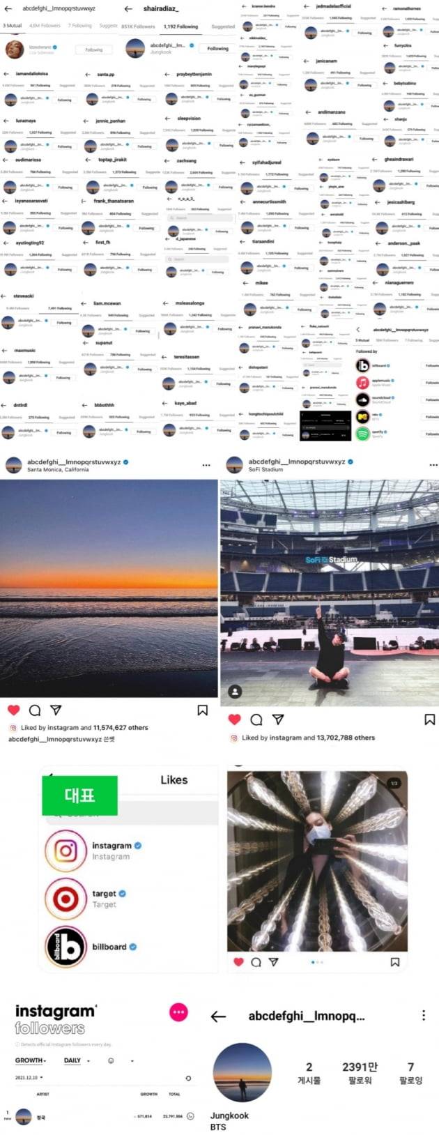 이 중 7일 만에 2391만이라는 엄청난 팔로워 수를 나타낸 멤버 정국의 인스타그램 계정에 전세계 셀럽들이 앞다퉈 팔로잉을 하면서 대세 중 초특급 대세의 명성을 입증했다.