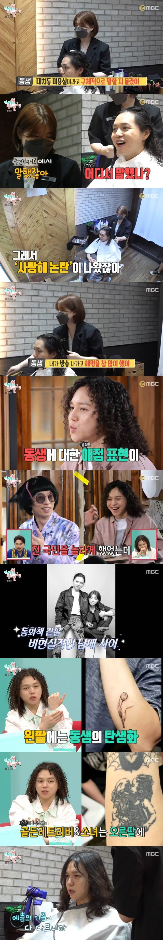 원슈타인의 다음 행선지는 여동생이 일하는 대치동 미용실. 여동생은 “오빠 알아보기 전에 빨리 가야 한다”며 바로 원슈타인을 미용실 의자에 앉혔고 “오빠가 대치동 미용실이라고 구체적으로 말할지 몰랐다”고 난감해 했다. 정작 원슈타인은 “내가 말했나?”라며 기억하지 못했고 여동생은 “‘놀면 뭐하니?’에서 말해서 사랑해 논란이 나왔잖아”라고 응수했다.