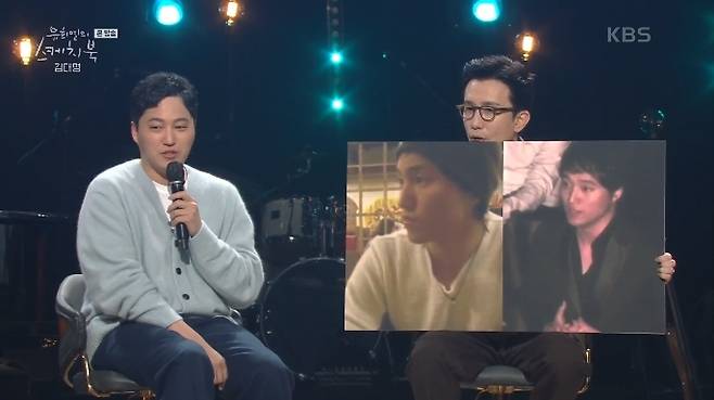 김대명은 "이 친구들이 어디서 잘 지내고 있을까? 건강했으면 좋겠다"고 너스레를 떨며 "오른쪽 사진은 2009년, 2010년 쯤, 왼쪽 사진은 더 어렸을 때 2003년쯤이었을 거다. 리즈시절로 다시 가고 싶다는 생각이 들다가도 못가는 걸 깨닫고 연기 열심히 해야겠다 더 갈고 닦아야 겠다 한다"고 답해 웃음을 자아냈다. (사진=KBS 2TV '유희열의 스케치북' 캡처)