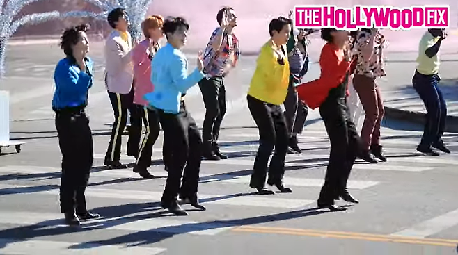 코든 쇼는 촬영장소인 CBS스튜디오 앞에서 깜짝 이벤트 중 하나인 횡단보도 콘서트(Crosswalk concert)를 선보이고 있는데, 마침 촬영장소를 지나던 LA지역방송 KTLA 앵커 셰어 캘빈이 신호대기 중 BTS 즉석공연을 1열 직관하는 행운을 거머쥐었다.