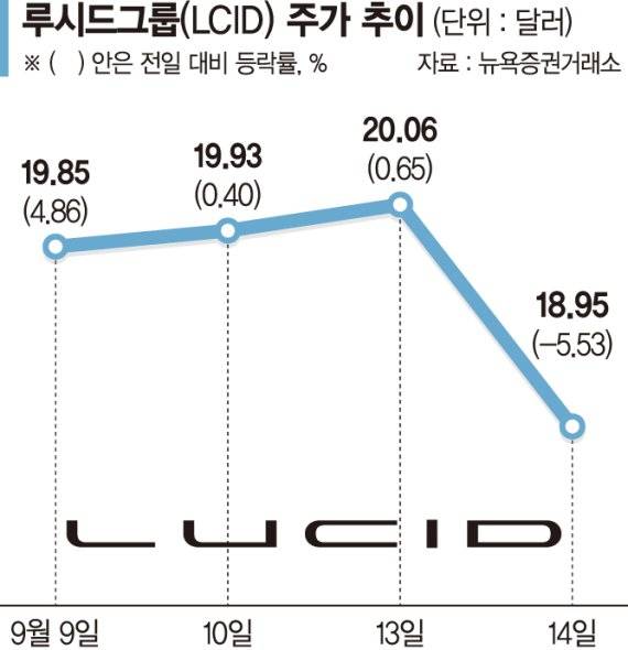 하지만 기대와 달리 주가는 다음 날인 14일에 전날보다 5.53% 급락했다. 종가 및 순매수액 규모로 단순 계산했을 때 루시드로 인한 국내 투자자의 14일 하루 손실 규모는 310만달러(약 36억원)에 이른다.