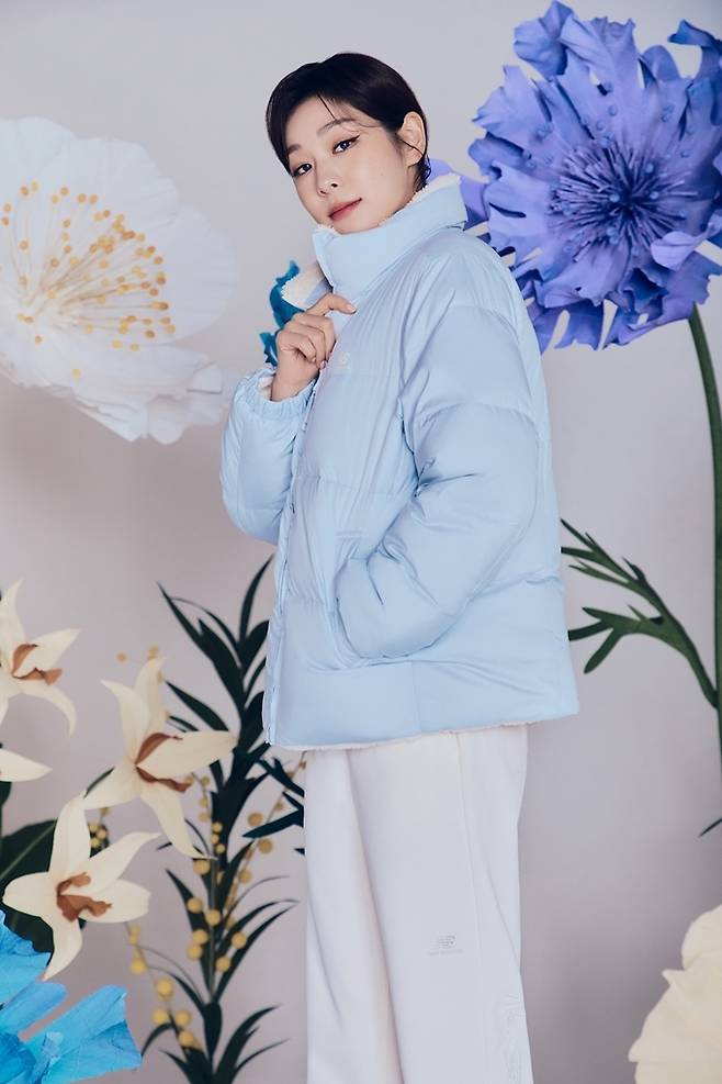 김연아는 글로벌 스포츠 브랜드 뉴발란스와 함께 한 겨울 화보에서 포근한 분위기의 구름과 꽃을 배경으로 일상 속에서 편안하게 착용할 수 있는 윈터 다운의 셋업 코디와 함께 내추럴하면서 따뜻한 감성을 자아냈다.