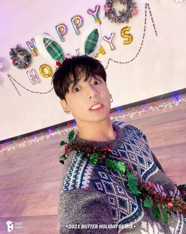 이 중 'Butter' 도입부를 장식한 멤버 정국은 자신의 별명 '토끼'에 걸맞게 토끼 머리띠를 끼고 상큼 발랄 극강의 귀요미 매력을 선보였다.