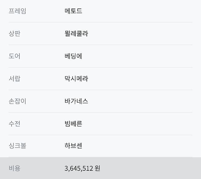 안팎으로 살펴봤으니 이쯤에서 주방 구성 제품들과 가격을 한 번 정리해볼까요?
